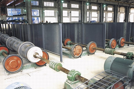 (2) 钢模同心度好、跑轮磨损一致、直线度好不变形,与钢模跑轮对齐不错位,离心时管模不跳动。